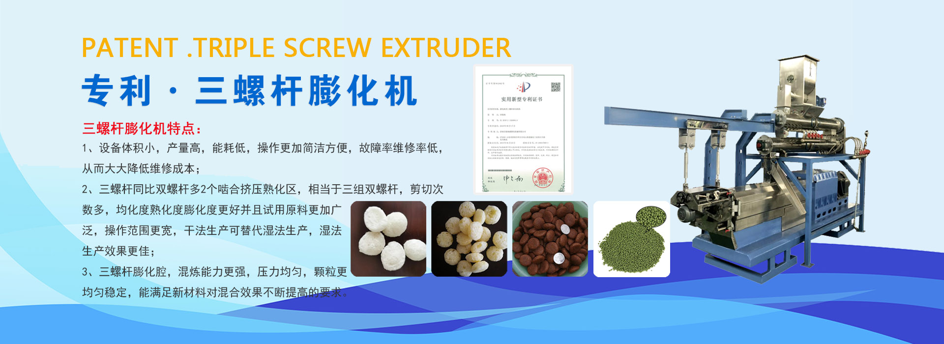 濟(jì)南百脈海源膨化機(jī)械有限公司是集科研開發(fā)、制造培訓(xùn)、國(guó)際貿(mào)易為一體的高新技術(shù)企業(yè),并擁有國(guó)家專利十余項(xiàng)。十幾年來一直致力于擠壓膨化工藝及設(shè)備的開發(fā)和研究,先后研制開發(fā)了單螺桿、雙螺桿、專利三螺桿生產(chǎn)技術(shù)及設(shè)備,現(xiàn)已成為國(guó)內(nèi)主要擠壓膨化生產(chǎn)設(shè)備專業(yè)生產(chǎn)廠家。公司立足國(guó)內(nèi)市場(chǎng),拓展國(guó)際市場(chǎng),產(chǎn)品銷往全國(guó)各地,并遠(yuǎn)銷到亞洲、歐洲等國(guó)家地區(qū),市場(chǎng)占有率逐年增長(zhǎng)。公司將繼續(xù)進(jìn)取,勇于創(chuàng)新,與國(guó)內(nèi)外同行一起為促進(jìn)我國(guó)膨化機(jī)行業(yè)發(fā)展作出貢獻(xiàn)!